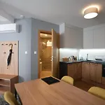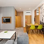 Das K4 Aparthotel Krakow in Krakau umfasst 8 Zimmer und stellt einen Flachbildfernseher mit Satellitenkanälen, schallisolierte Fenster und einen privaten Safe zur Verfügung. In einigen Zimmern gibt es ein privates Badezimmer mit einem Bidet.